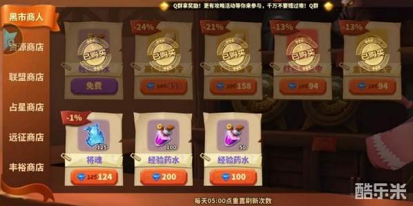 1、玩家可以通过商店查看黑市商人,每天会提供免费的经验药水以及折扣价格的道具;