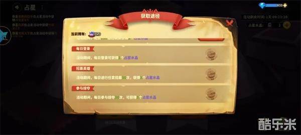 占星水晶可以通过每日任务获得7个,也可以花费200钻石购买,每天最多购买5个。