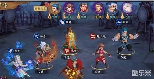 速度配置:大乔1速,孙策比韩当速度快,陈宫3速,其余随意。(孙策必须比韩当快,因为韩当和孙策同是水属性)