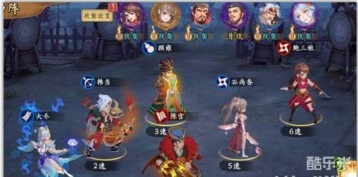 技能配置:大乔,韩当,孙策,鲍三娘,陈宫开技能。