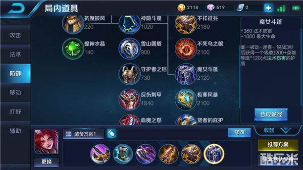 六神装推荐:巡守利斧+抵抗之靴+暗影战斧+无尽战刃+不祥征兆+魔女斗篷