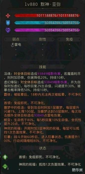 第二部分是我们的老朋友陌神亚弥,带上巨神套,毒戒指,(面板低或者刮痧上金芒刃),黎明豪侠双C,黎明及时驱散陌神的增益,用毒来遏制回血效果。打完之后回元素之塔取出元素核心。