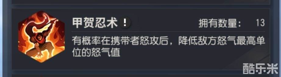 枫推荐带甲贺忍术或者极限流,甲贺忍术就不多说了是为了更好的降低敌方怒气,而极限流是为了防止切后排的阵容,视情况决定携带