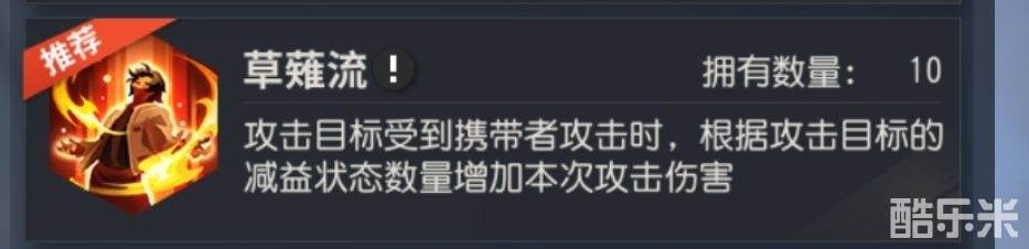 库拉推荐带草薙流,前面的雪,风对敌人造成的两次减益效果可以很好的触发草薙流这个秘卷,并且库拉的怒气技也可以给对方进行减益
