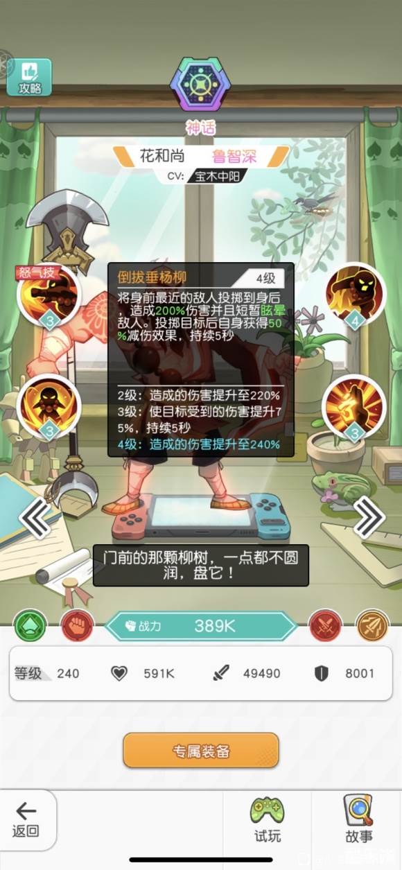 花和尚 鲁智深:关键技能(倒拔垂杨柳)(天火心经)