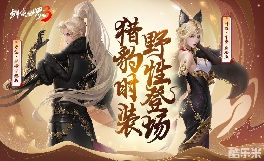 野性觉醒,引“豹”江湖。全新猎豹主题外观【华胥】野性登场。本次外观设计灵感来源于草原猎手——猎豹。至臻版外观采用黑金二色搭配,热烈明艳,加上绒毛围边、豹纹等元素,还原猎豹的野性之美。女款修身剪裁,优雅与野性交融,俏皮性感。男款则是霸道之中不失潇洒,可谓雍容华贵。另有系列单品同步上线,快来剑侠江湖,觉醒你的野性吧!