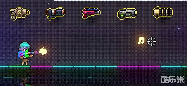 彩虹枪可以向前方发射子弹或者音符攻击敌人,同时向四周随机发射子弹。