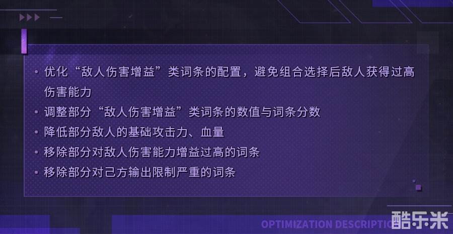我们将通过调整部分词条数量与数值,平衡敌人与己方的伤害能力,缓解管理员们在战斗中因为敌人伤害过高而导致的生存压力过大,或己方输出能力过低的问题。