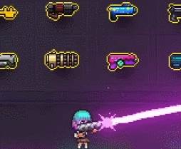 银月也是一个半近战的武器,弹幕是可以弯曲的激光射线,伤害还算不错,但是射程比较近,它可以通过下坠击碎石头,很适合探图使用,如果你不想浪费道具可以带上它移动。