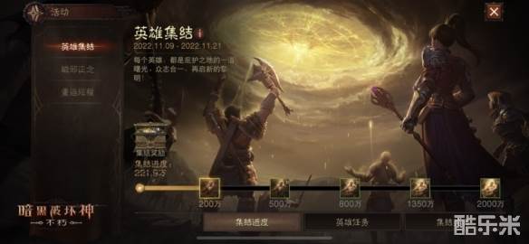 玩家还可以通过获取个人贡献增加服务器集结进度,当服务器进度到达里程碑时全服玩家可领取魔法装备掉落加成增益!冒险者们可以通过完成消灭常规怪物的任务,直接获得贡献值,或通过消灭精英怪物赢得获取曙光之耀的机会,兑换100点贡献值!以此推进英雄集结的进度!