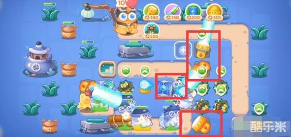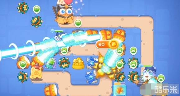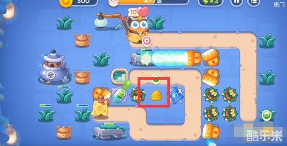 5、我们放置便便塔减缓移速很快的兔子的速度。