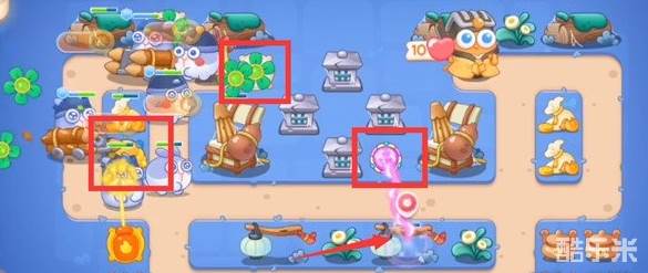 7、最后我们把场上炮塔升级即可,最终阵容如下图所示。