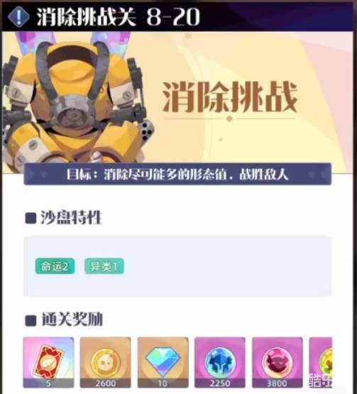 主线关卡8-20是一个典型的消除关卡,玩家需要尽可能的消除掉敌人身上的形态值,战胜敌人。整体难度比较的大,游戏一开始给我们的步数也比较的多,过关的时候要尽可能打出连携,大额的消除敌人的形态值。