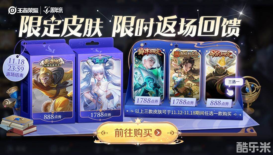 周年庆返场,限定皮肤购买三选一: