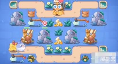 2、开始的时候会自带两个多重箭,左边直接满级先清理对面的障碍物,锁定大山。
