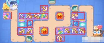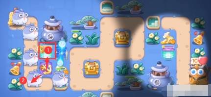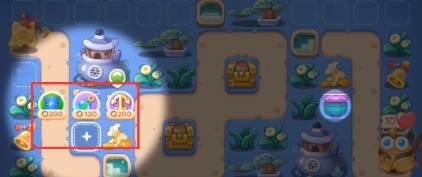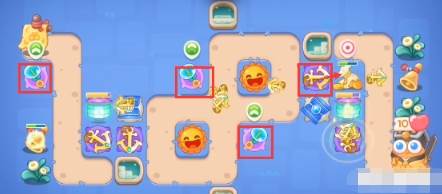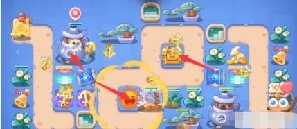 3、右侧放置一个双菱塔,双菱塔打中间箱子,里面是太阳,直接升满级,大范围清理障碍物。