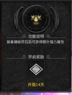 萤石系统在开服14天后开启,开启后在“装备”系统中可以看到相应界面,进入后可以给对应装备镶嵌萤石。