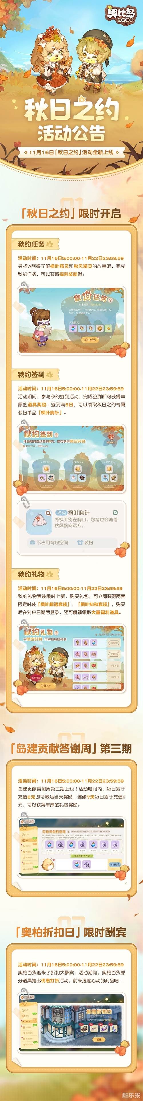 11月16日,奥比岛手游「秋日之约」活动全新开启,新时装、新任务即将上线!