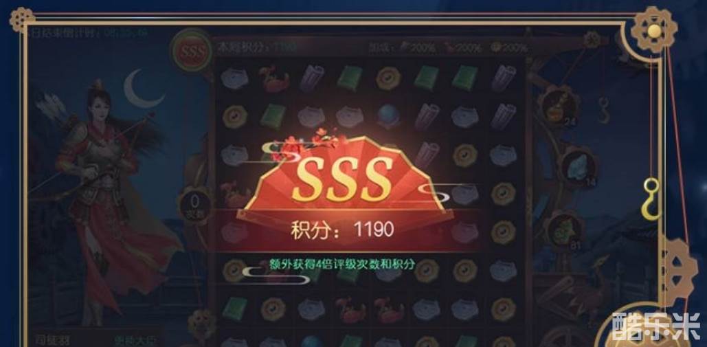 2、每一局游戏结束后会根据本局积分进行评级判定,最后跟据积分和评级进行奖励。评级有B、A、S、SS、SSS五个等级。