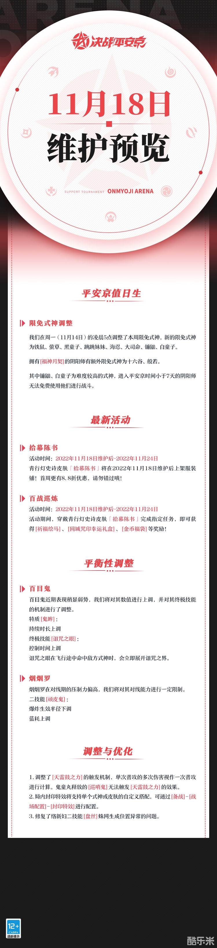 决战平安京11月18日更新公告有什么内容?决战平安京将在11月18日进行一波版本更新,新的版本更新自然玩家都是需要关注的,了解具体的玩法和内容玩家才能在这里体验到很多新的玩法技巧,更加容易上手,还不是很清楚的朋友直接看小编分享的内容就能了解。