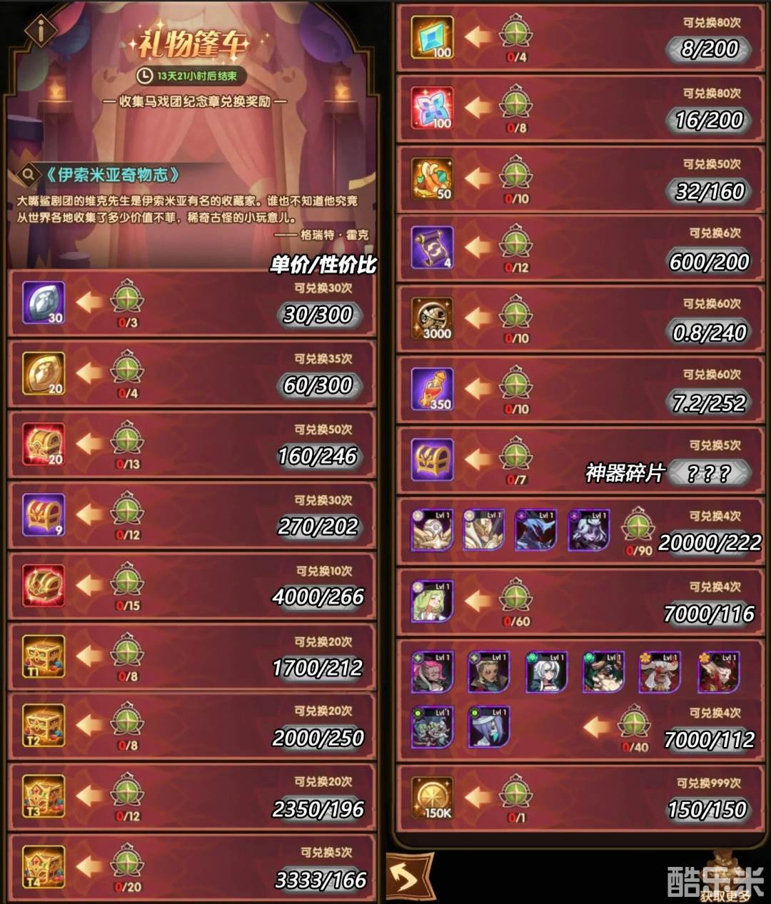 兑换性价比和上次相同(上期有许多算错了淦)