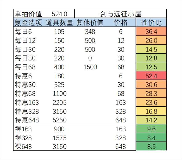 每种氪金选项及性价比如下
