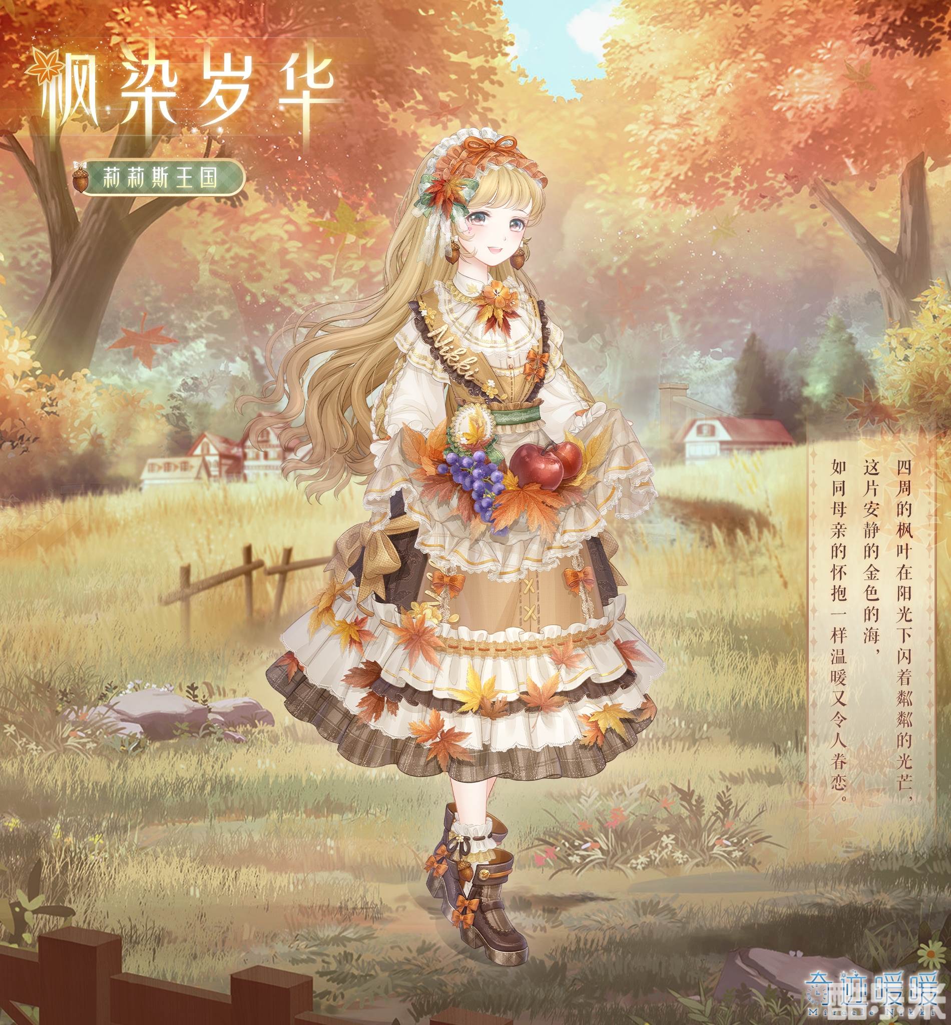 完成套装【枫染岁华】的阶段制作任务,共可通过“大喵限时制衣”活动领取【体力*60+金币*18888+幻阁券*2+幸运加成道具*5】奖励!活动期间还有特惠礼包和公主级双倍福利。
