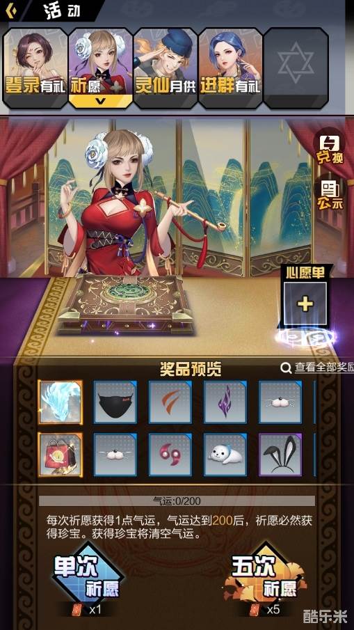Tips:祈愿一次增加一点气运,五连抽增加五点