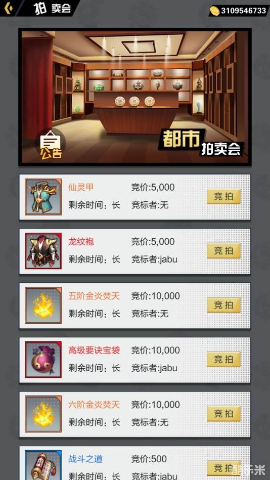 都市拍卖会则是修真者与修真者之间的的竞价,在剩余时间内叫出的价格如果没有人能跟价,你所心仪的物品将会收入你的囊中哦~!