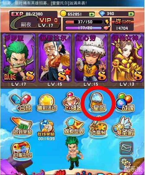 想要查看星图,我们可以在主界面中,下图红圈标示的地方进入。