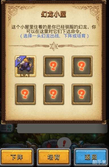 在幻龙小屋中,可以对幻龙进行上下阵操作