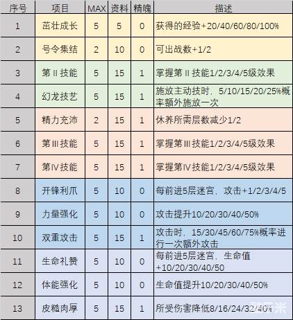 1级需要400点经验升级,后续每级增加50点经验。幻龙升级可增加生命值和攻击力。