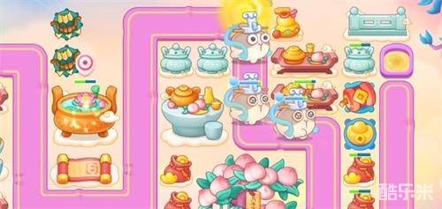 1.开局我们现在左上角造一个一级的弓箭,右下角造一个三级的鞭炮,并锁定下方的钱袋,等第一波的兔子走到右上拐角的时候,我们就取消锁定,并锁定左边的卷轴,有金币就给弓箭升级,打掉卷轴后,我们再去锁定右边的葫芦。
