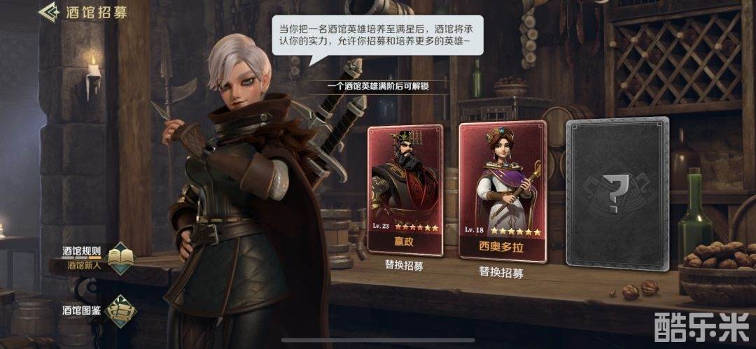 酒馆玩法中,领主大大们可以将已经招募的「酒馆英雄」,和未招募的「酒馆英雄」进行切换,切换后原英雄将会保留等级进入酒馆,其进阶数将会被切换的新英雄继承。另外,新手期的领主大大可以额外选择是否继承英雄等级。