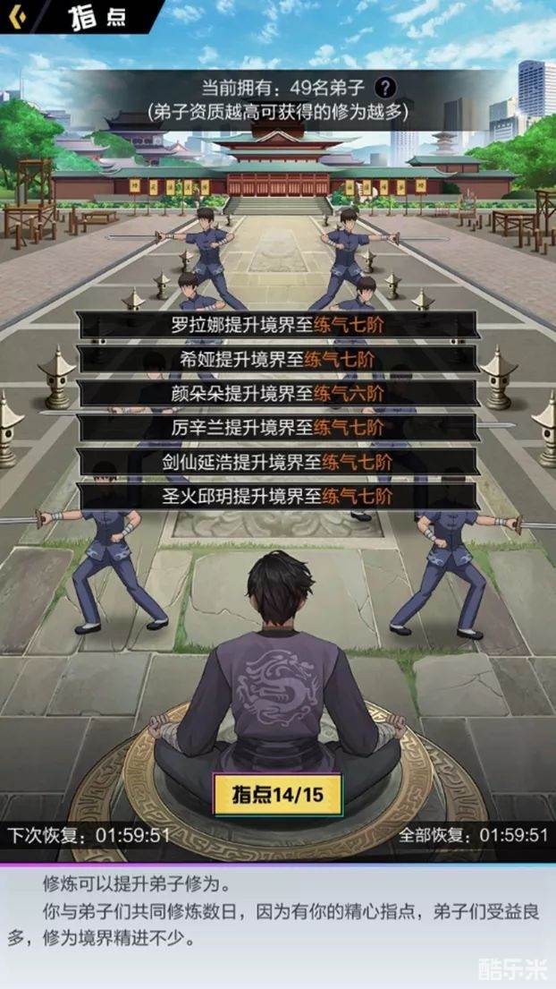 指点是提升弟子属性的重要途径,弟子的资质越高,可以获得的修为就越多,境界提升越快;