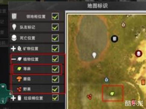 打开地图,在小地图中有地图表示选项,这里面玩家可以找到植物位置,里面就能够找到荨麻的选项,勾选荨麻地图中出现的绿叶标识就是荨麻了。