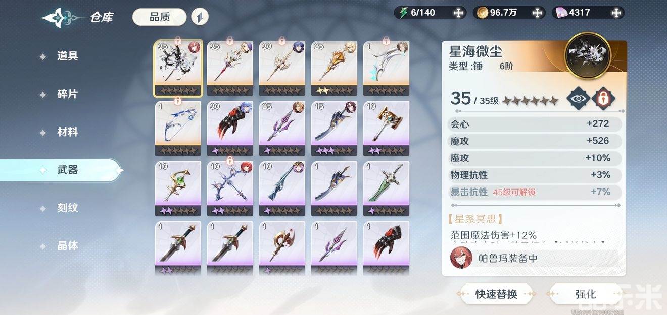 刻纹大多为10级,个别20级一个角色也就1-2个,今早升了一波武器和刻纹,跟昨晚差距比较大就不截图了。