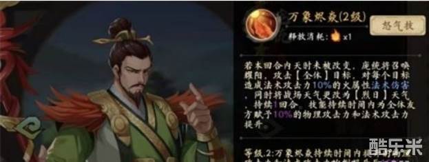 满级被动的效果命中+80%配合怒气技能50%的技能命中率,能保证被动回怒的稳定性,同时给对方添加负面效果也很强力,叠加到满层,减少对方全体50%命中和60%治疗效果,控场能力强劲。