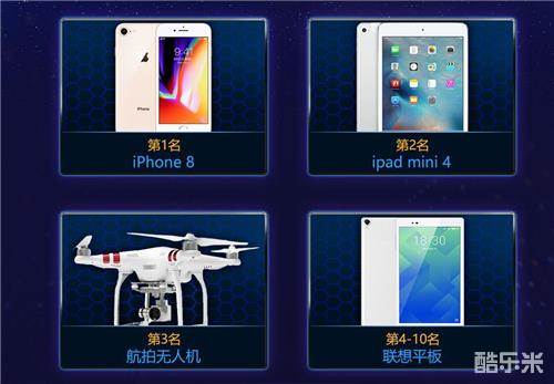从这次的奖品来看,是非常丰富,前三名的iphone8、iPadmini4、 航拍无人机,都格外惹眼,而前10名都是联想平板电脑足以看出官方的诚意,大家千万别忘了,实体奖品如此丰厚,大家可千万不要错过哦。