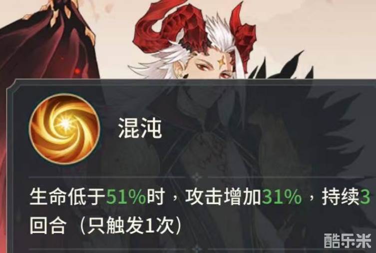穷奇这个角色的一技能能够对敌方血量比较少的角色造成209%的伤害,还会降低目标28%的攻击力,效果能够持续两回合,他的二技能是能够增加攻击84%,增加破防840,他的三技能是在释放时能够增加11%的暴击率,该效果会持续两回合,当穷奇的生命值降一半以下后,他的基础攻击力能够提升31%,该效果持续三回合,但是这个技能的效果只局都只会触发一次,也就是说,如果在穷奇的血量降低到自身50%血量以后,触发了该效果,但是其他的队友也给了他恢复技能,等到他再一次降落到50%的时候,就无法在重复触发该技能效果了。