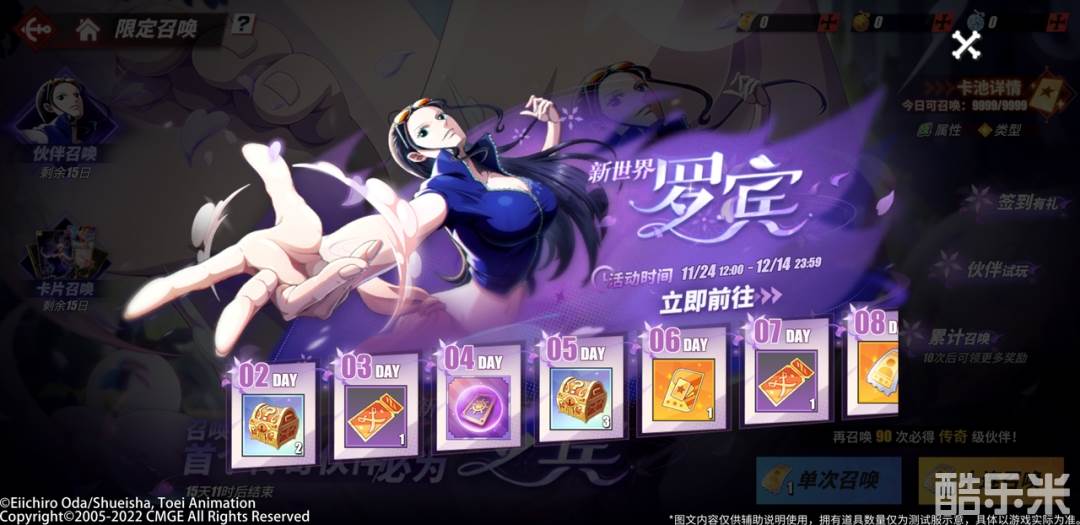 -新传奇伙伴「新世界罗宾」限定登场!可通过限定召唤获得新伙伴。