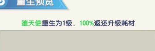 重生作用:能够返还百分百的升级材料,在游戏前期玩家养成的英雄出现错误的时候能够进行止损,相当于一个后悔药机制,能够直接重生再次利用资源来养成其他英雄,能够大大的减少资源的浪费,减少资源的获取时间。