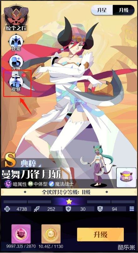 8. 现在在背包内使用皮肤礼盒后,会在【养成】-【伙伴】的对应伙伴详情界面内显示提示小红点了。