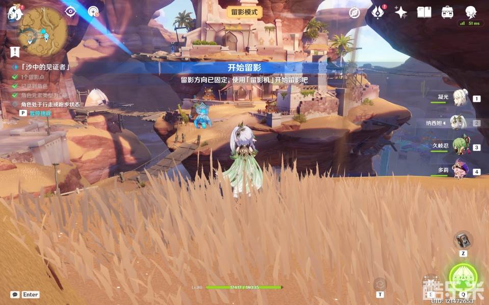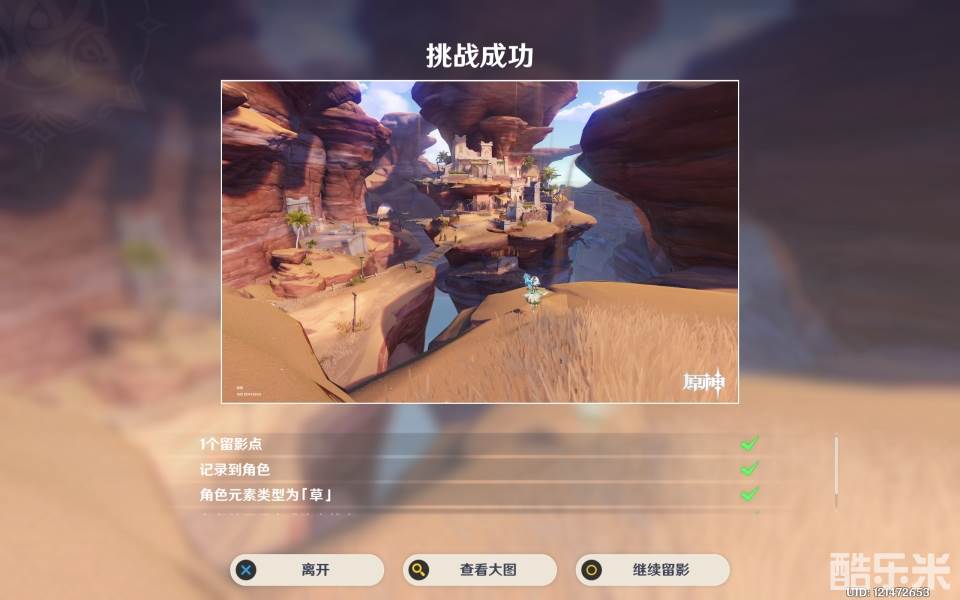 然后换出草系角色,准备留影,找好角度点击确定