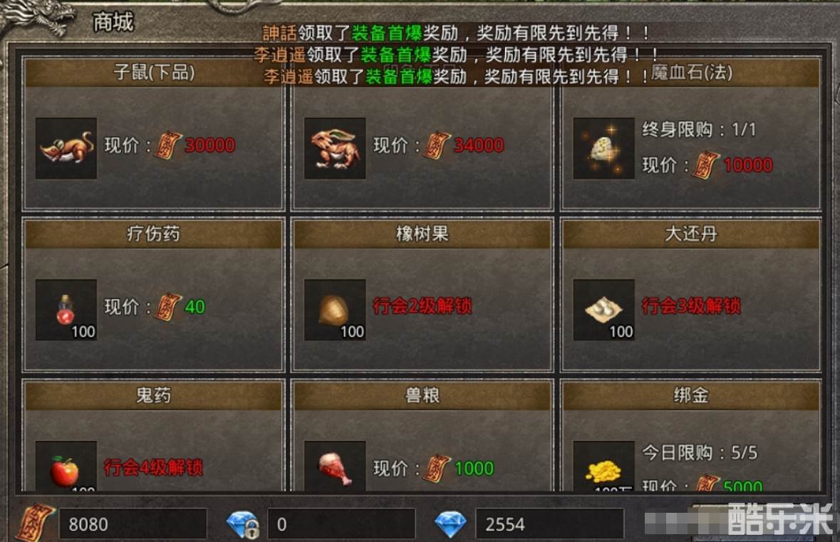 另一种获得方式,比较简单粗暴。就是在商城里直接购买。子鼠(下品)、卯兔(下品)、丑牛(下品)都能在商城里买到。值得注意的就是购买需要灵符,子鼠需要三万灵符、卯兔需要三万四千的灵符、而丑牛需要四万的灵符。