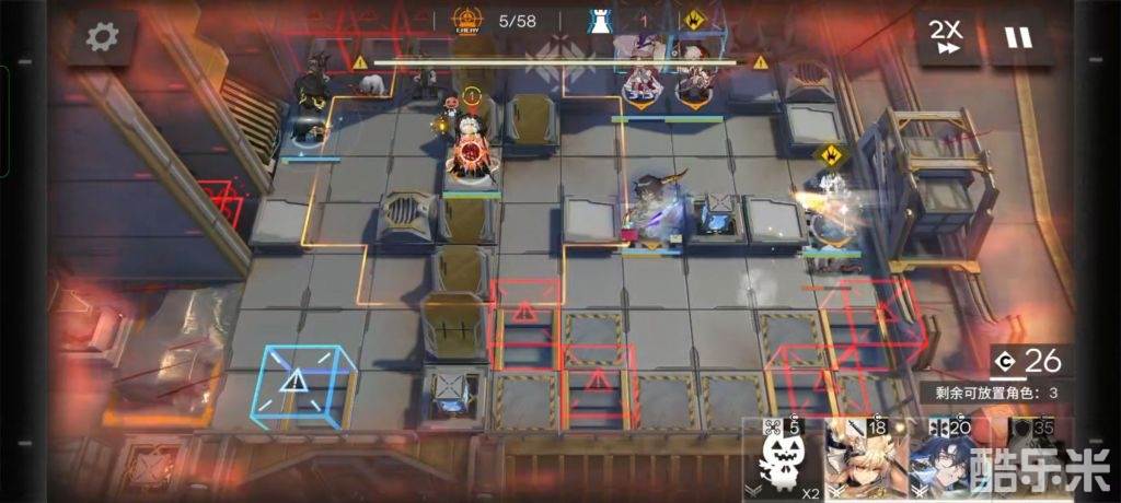 依次部署2先锋↓山,棘刺↓夜莺←等城防炮进度快满的时候下老鲤在最左边抗一炮顺带秒掉左边的怪。