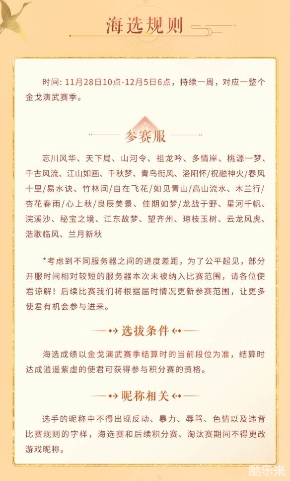 详细规则与本届赛事赛制调整尽在小麒麟抱来的长图中,使君大人快了解一下吧。