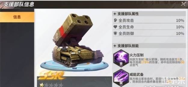 火箭发射车布拉德利可以给我方全体格斗家,提供生命力、攻击、防御属性加成,自身有两个技能可以使用,火力压制释放三枚火箭,随机攻击敌方格斗家三次。被动技能威能武备,在我方格斗家攻击时,发现敌方格斗家比自己生命力高,暴击概率将会提升。