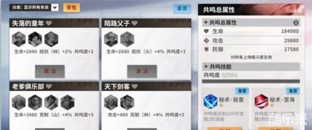 要注意的是,每个章节内的觉醒技能解锁需要共鸣总等级分别达到100和120级后才能解锁,不同章节里的技能等级并不共享,所以尽量选择同一章节里的共鸣条目进行解锁,这样更容易觉醒共鸣技能。