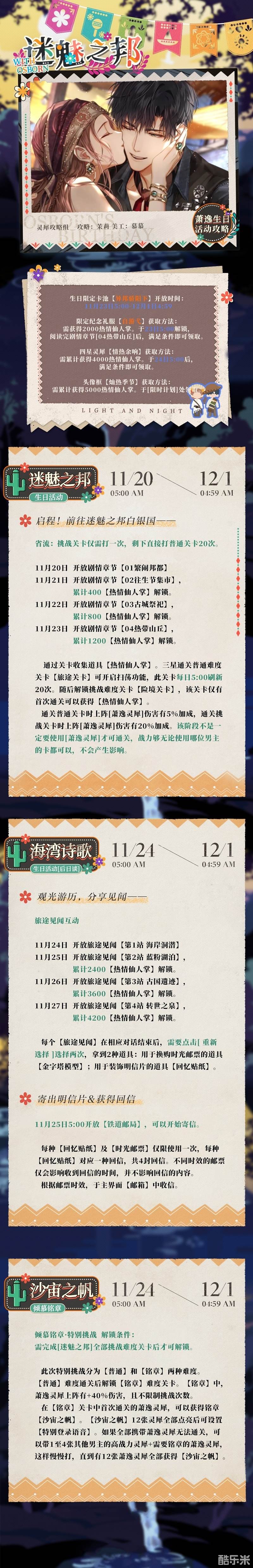 11月21日开放剧情章节【02往生节集市】,累计400 【热情仙人掌】解锁。